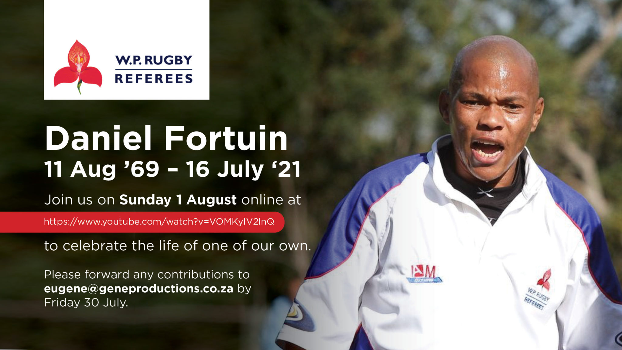 We are celebrating the life of Daniel Fortuin this Sunday, 1 August. Please see details below.